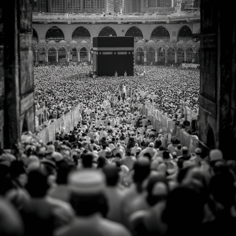 Jour 5 – Transit Médine-La Mecque : Départ matinal, arrêt au Miqat de Dhul Hulayfah pour se mettre en état d’Ihram, voyage vers La Mecque (4-5 heures), installation à l’hôtel et première vision de la Kaaba lors du Tawaf d’arrivée.